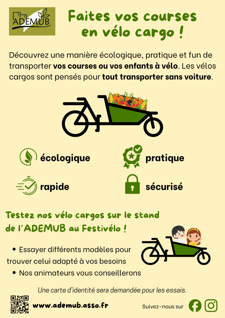 - 🚲 Un stand vélo-cargo : en partenariat avec La Rustine. Venez découvrir et tester différents modèles de vélo-cargo.